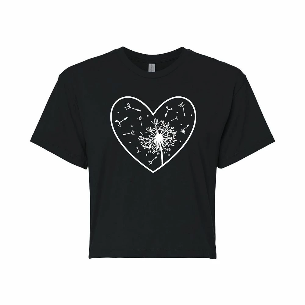 Love is on the wind with this juniors’ dandelion hearts cropped graphic tee.