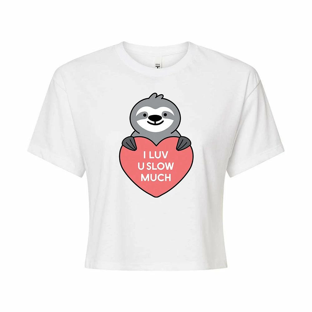 Slow and steady wins your heart with this “I Luv You Slow Much” juniors’ cropped graphic tee.
