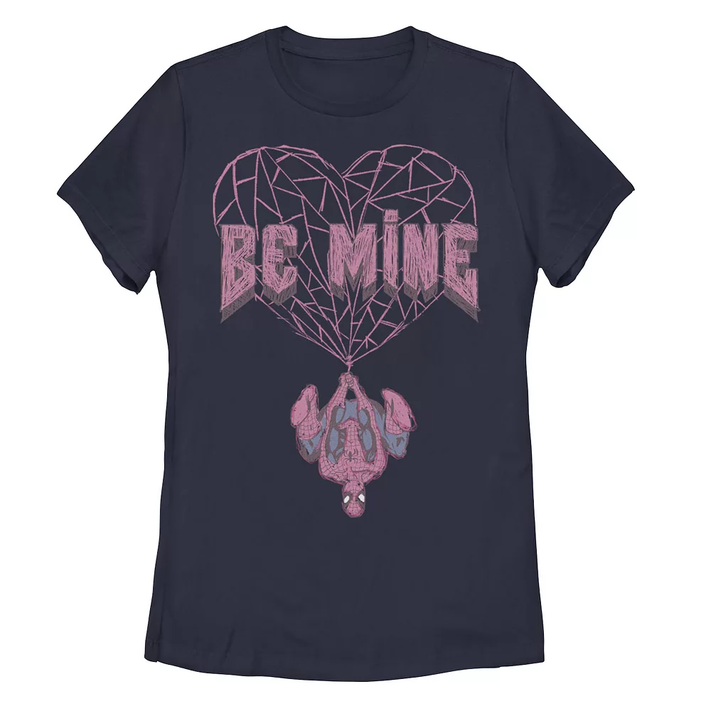 You’ll be ready to swing into action for Valentine’s Day with this juniors’ Spider-Man “Be Mine” web tee.