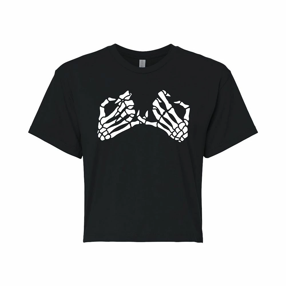 Not even death can break the skeleton pinky promise on this juniors’ cropped graphic tee.