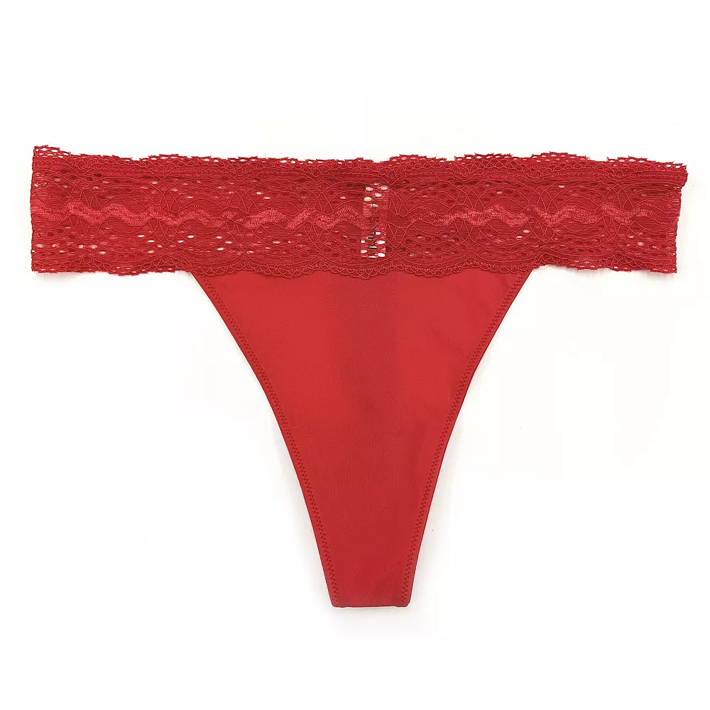 A lace waistband lends pretty style to this SO micro with medallion lace thong.