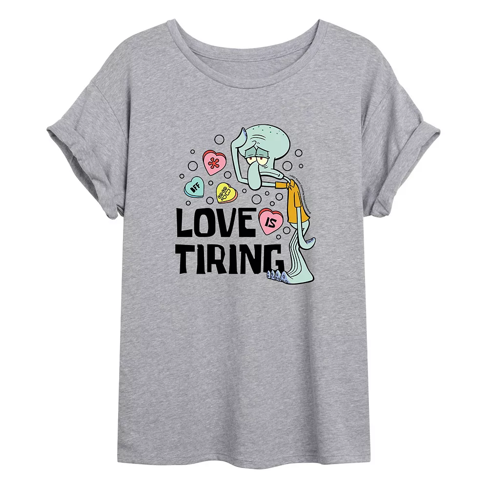 Show off your favorite SpongeBob character with this juniors’ V-day Squidward rolled cuff tee.