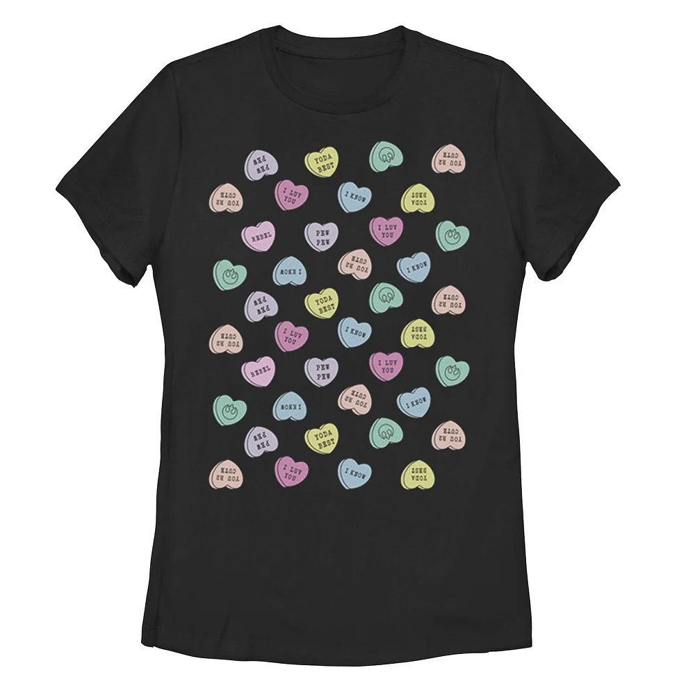This one-of-a-kind Valentine’s Day tee features all your favorite Star Wars jokes and references in classic candy heart form!