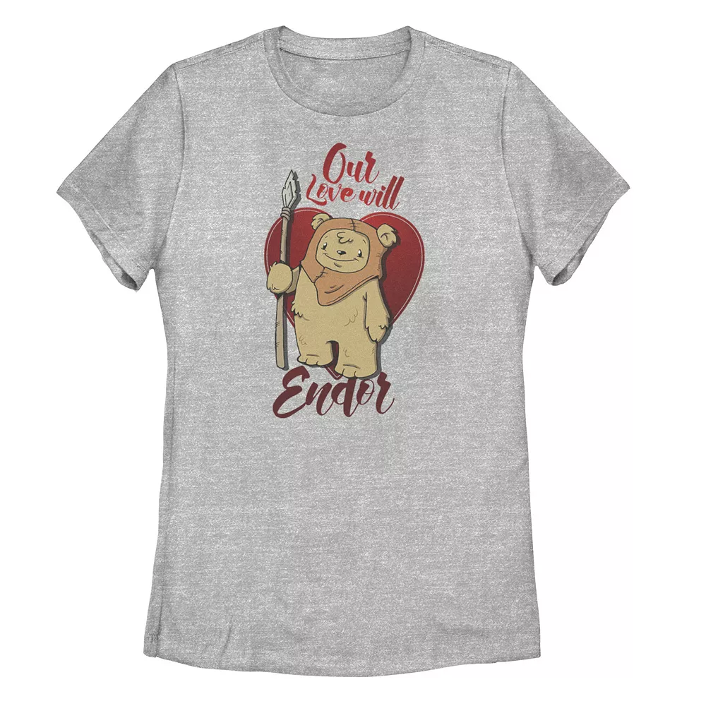 Upgrade your wardrobe with this Star Wars Ewok our love will endor portrait tee.